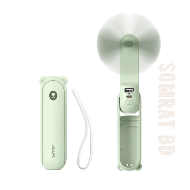 • ফোল্ডেবল ডিজাইনের কারণে এটি সহজে বহন এবং সংরক্ষণ করা যায়। ক্যাপসুল আকৃতির (৫.১১.৬৫১.৬৫ ইঞ্চি, ওজন: ৬.৩৮ আউন্স) হওয়ায়, ফ্যান ব্লেড ভেতরে লুকানো যায় এবং এটি এতটাই ছোট যে পকেট বা হাতব্যাগে সহজেই রাখা যায়।